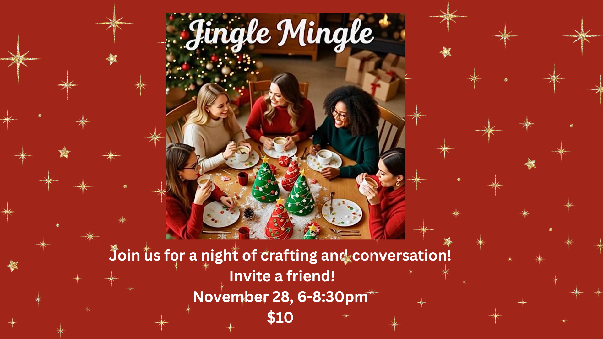Join us for lots of fun, food, craft and conversation. We will be making ornamental paper Christmas trees. We will be hearing stories of faith and how Jesus wants to transform our lives, so we can live in the love, joy, peace and freedom that Christmas promises! Be sure to register you and your friends, $10 per ticket. Doors open 5:45pm.